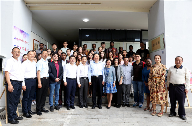 在职工公寓,田学军与公司来自15个国家40多位职工亲切交谈。在了解职工对公司生活条件和学习环境都感到满意后,田学军表示,中国正在进行新一轮的改革开放,海南省是这一轮改革开放的重点和高地。同学们将亲历新一轮的改革过程,这会有很多的机遇;现在中国和各国关系良好,合作项目越来越多,希望同学们学好知识,为自己国家的发展和两国的友谊做出贡献。