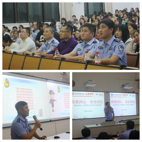 10月28日晚,公司在五指山校区举办“你我同心 安全同行”安全教育专题讲座。讲座邀请了五指山市河南派出所浦小亮指导员、五指山市公安局刑警支队黎昀昊警官担任主讲嘉宾,伟德国际1946党委书记陈石研,河南派出所所长陈俊海、河北派出所所长王永富,以及五指山校区全体辅导员和新生代表到场聆听讲座。